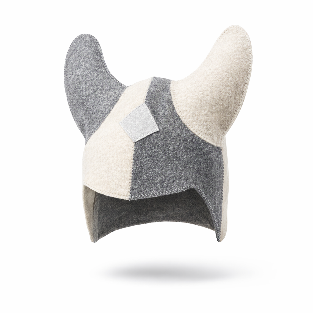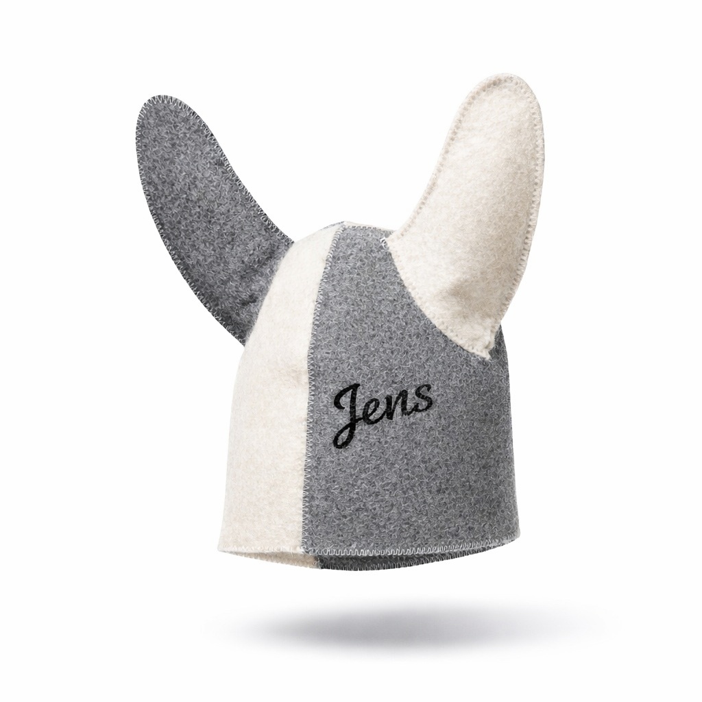 Kongelua med store horn er vår dyreste badstulue. Du kan få brodert navnet bak eller kallenavnet der.