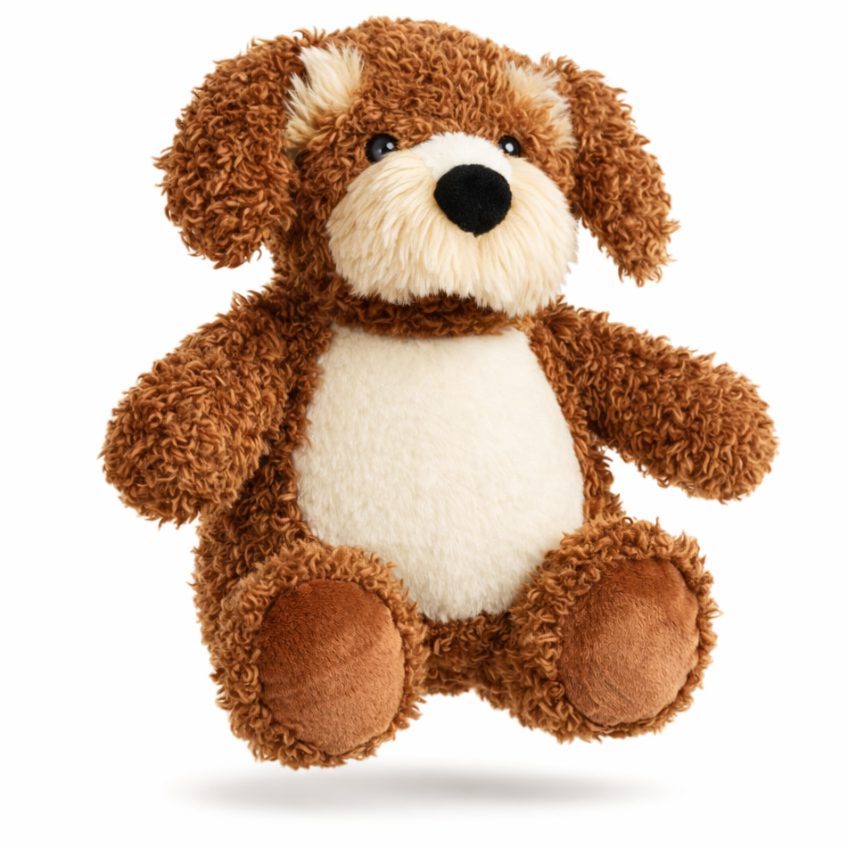 Bamsen er laget i ekstra mykt plysjstoff, med sydde øyne og runde former, noe som gjør den trygg for både babyer og små barn.