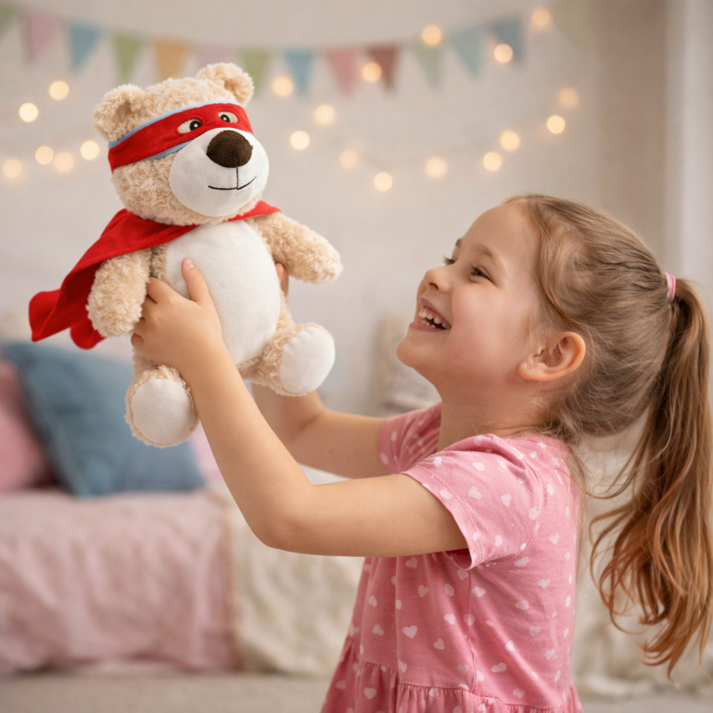 Denne bamsen er ekstra stor og ekstra myk – perfekt for kos, trygghet og gode klemmer. Den er laget for å vare, og passer like godt som gave til nyfødte som til større barn.