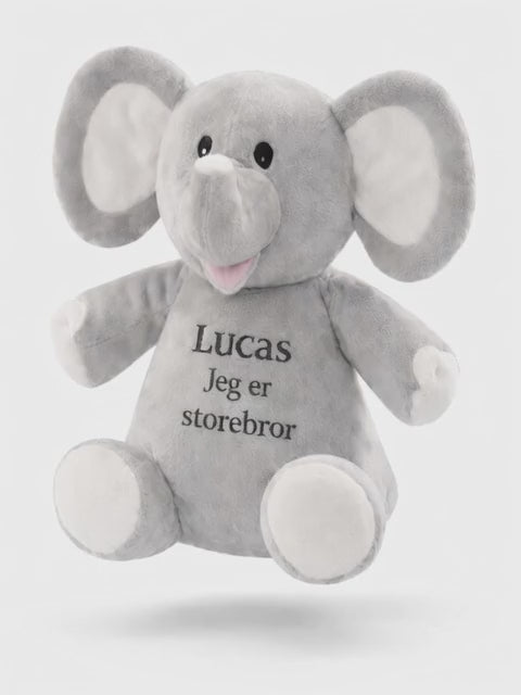 Glad ELEFANT bamse med brodert navn - Ekstra myk