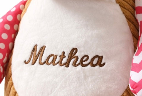 Denne koselige myke bamsen blir helt unik med valgfritt navn brodert direkte på magen.