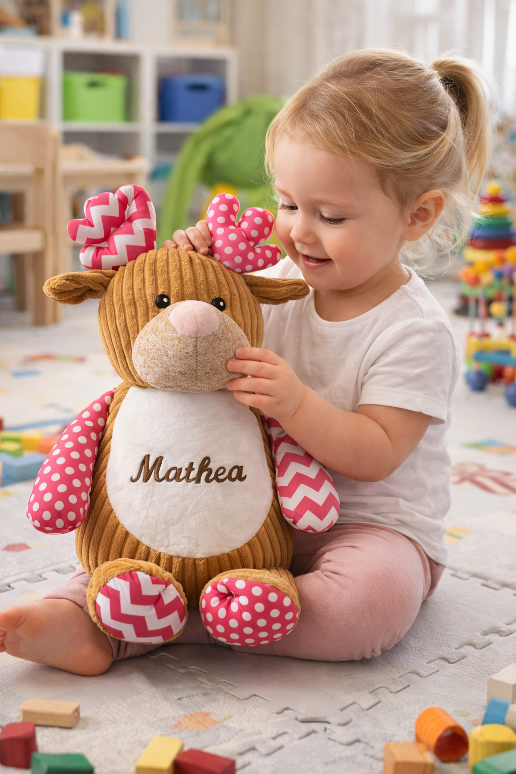 Denne bamsen er ekstra stor og ekstra myk – perfekt for kos, trygghet og gode klemmer. Den er laget for å vare, og passer like godt som gave til nyfødte som til større barn.